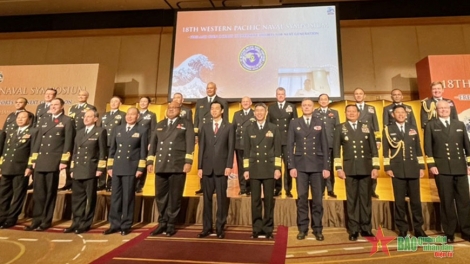 (VOVWORLD) - 第18届西太平洋海军论坛年会(WPNS-18)11月7日至8日在日本横滨举行。论坛21个成员国及6个观察员国共27个国家的海军司令、代表团团长与会。越南人民海军司令、海军少将陈青严率越南海军代表团出席论坛。