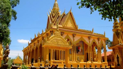(VOVworld)- 踏足越南九龙江平原高棉族群居的地方,那一座座掩映在具翼龙脑香树、糖棕树荫下,飞檐翘角的寺庙令人印象深刻。在南方高棉族聚居的地方共有约600座大小寺庙。每座都极具高棉族建筑特色,为形成越南南方文化特有的“神圣”空间做出了贡献。