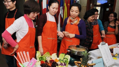 (VOVworld)-适值3.8国际妇女节,本台对外广播频道举行各个语言组女员工烹饪比赛。比赛中,大家各展手艺,展现了越南妇女事业家务一肩挑的风采。下面就是一组比赛撷影: