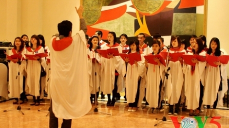 (VOVworld)- 圣诞节即将来临,这段时间,河内各个教堂经常传来唱诗班的歌声。他们不仅过节时在教堂表演,一些大教堂的唱诗班还在圣诞节前一周应邀到大酒店、购物中心演出。本期“镜头中的越南”请看北门教徒唱诗班在河内酒店的演出活动。