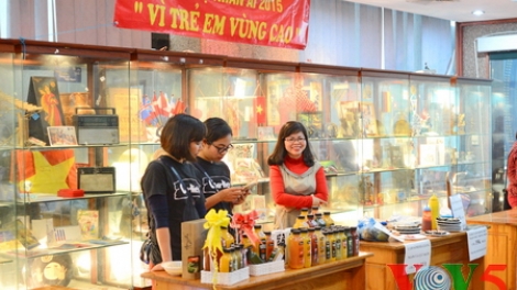 (VOVworld)- 越南国家对外广播频道为了山区贫困儿童基金本周举行义卖活动。VOV5各个语言组和行政部在活动中展销手工艺术品、衣服、食品等。部分所得将用于本台2016年1月份组团赴高平省开展慈善活动。