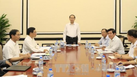 (VOVWORLD) -越南国家主席陈大光9月14日与2017亚太经合组织(APEC)系列会议国家筹备委员会、国家主席办公厅、外交部、文化体育和旅游部及有关机关领导人举行工作会议。