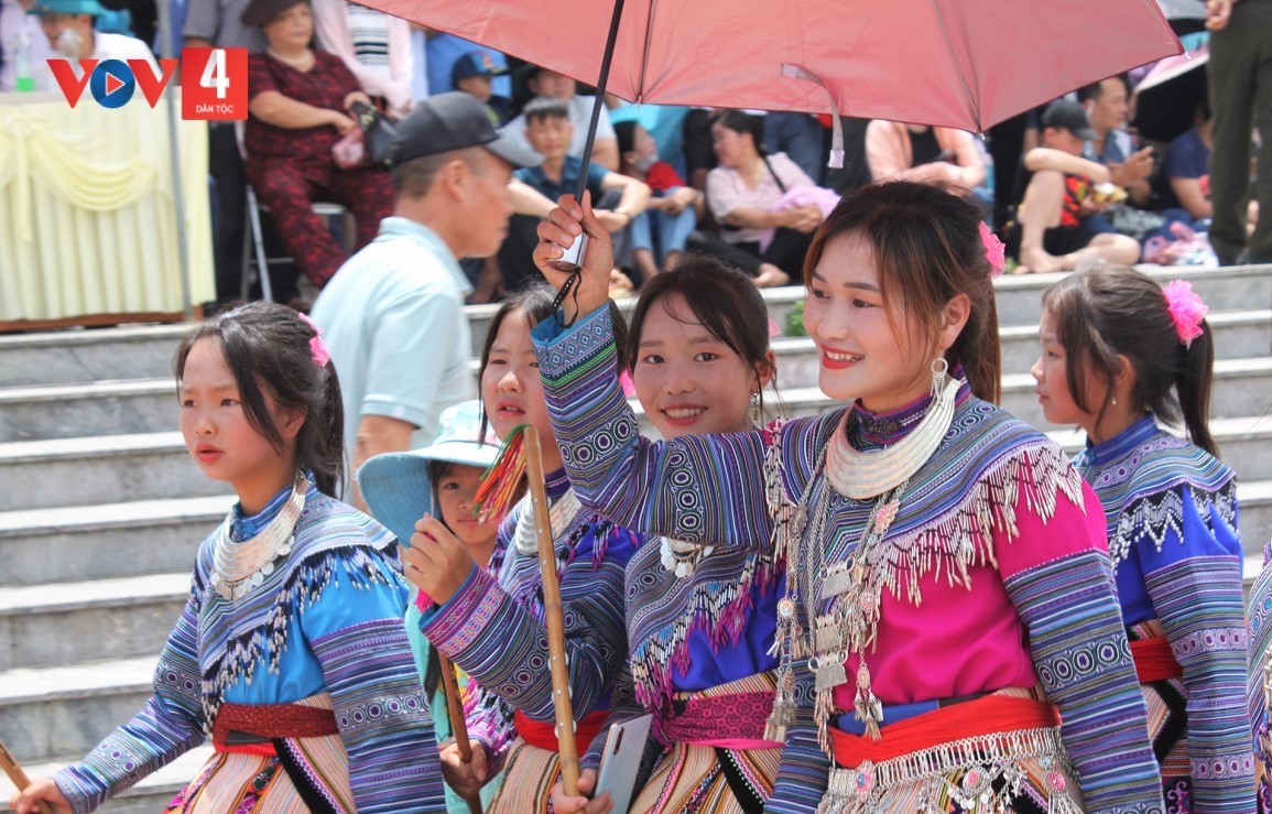 老街省北河县的北河集市是老街省最具特色的集市之一。春节期间,桃花、梅花、肉干、红筷子等的鲜艳色彩,让市场变得更加热闹、更有吸引力。少数民族同胞纷纷将年货带到集市上销售。清晨,当山坡还笼罩在薄雾中时,村民们就已经兴高采烈地前往北河镇赶集。在杏花、梅花的白色和玉米地的金黄色中间,少数民族同胞身着绚丽多彩的服装,构成了西北高原一幅色彩斑斓的画卷。
