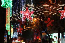 近几天,胡市披上了五彩缤纷的节日盛装。市中心处处挂着花灯,大街小巷都是孩子的笑声。从第一郡到滨城市场、圣母大教堂所在的阮攸路、同起路、阮惠路等流光溢彩,一派节日景象。许多大道装饰了大型梅花坛,大盏彩灯,营造出深具南方风情的景观空间。最特别的还是阮惠路的春节花会。整条街上摆设着来自全 国各地的数万盆花卉。