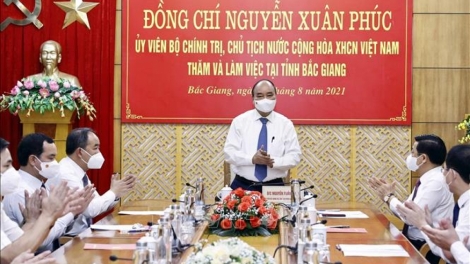 (VOVWORLD) - 越南国家主席阮春福8月18日上午在北江市与北江省主要领导人举行工作座谈,就落实社会经济发展任务问题进行讨论。