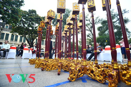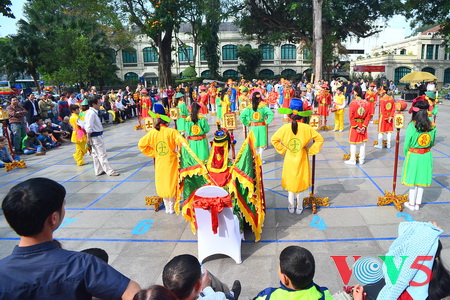 (VOVworld)- 每逢春节,越南各地都隆重举行多项精彩活动,吸引众多国内外游客。其中少不了给人留下深刻印象的人棋比赛,本期“镜头中的越南”,请大家欣赏河内日前举行的2015年乙未春节人棋总决赛。