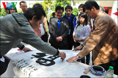 书法家现场挥笔书写“福”字赠给越南青年代表团