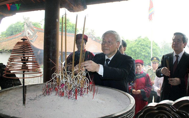 越共中央总书记阮富仲在国祖雒龙君祭台前上香
