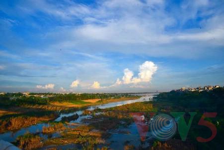 桥边河景
