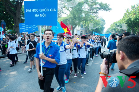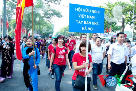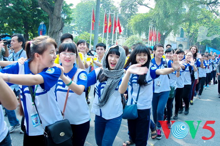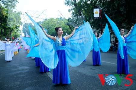 (VOVworld)- “和平文化日”游行活动日前在河内李太祖塑像公园举行,国内外组织代表、年轻人纷纷参加活动。这是纪念河内被联合国教科文组织授予“和平城市”称号15周年的活动之一。