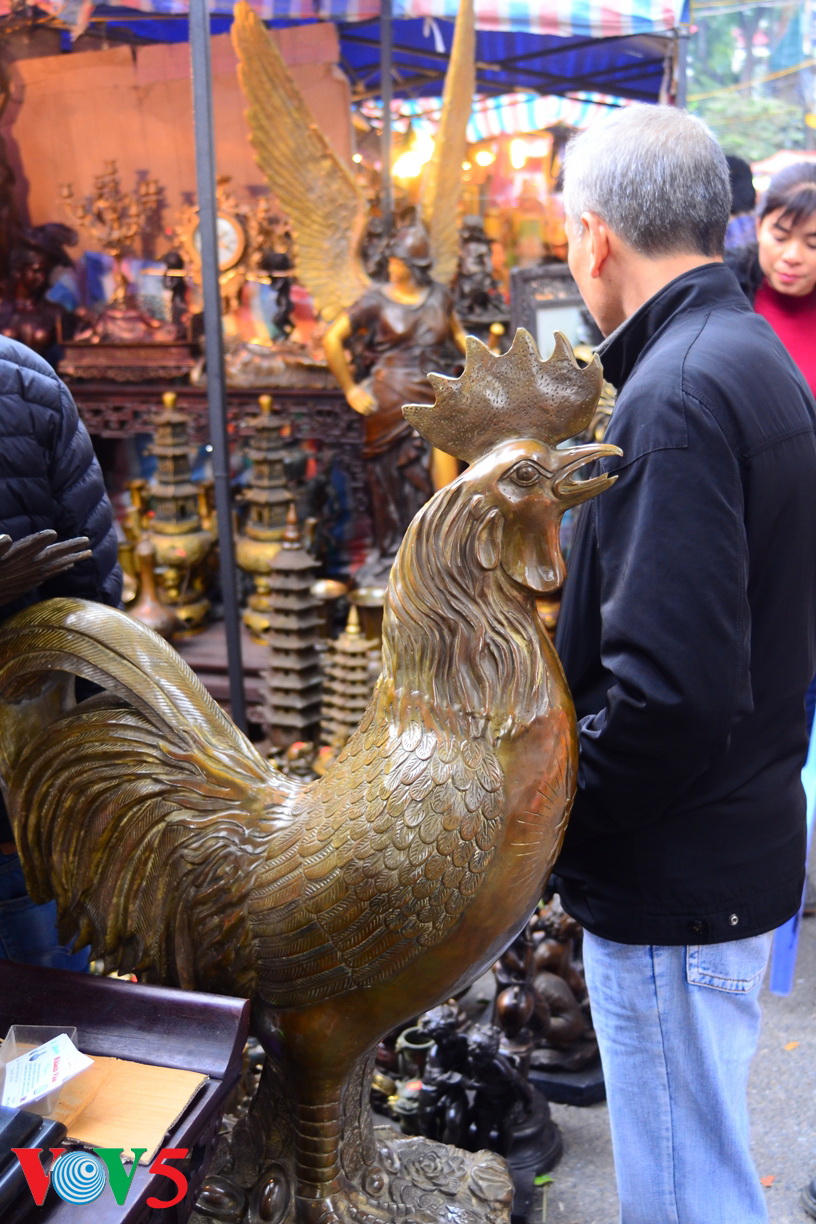 附近的街道也摆摊,出售陶瓷、铜器等装饰品