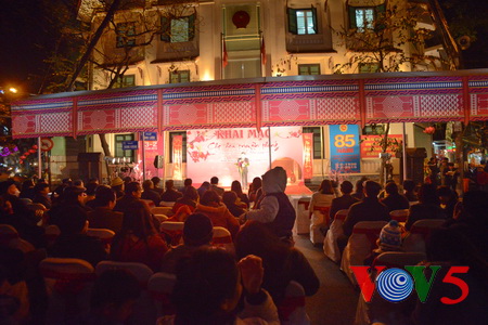 (VOVworld)- 值乙未春节来临之际,河内古街举行传统迎春花市,再现首都市民春节传统风俗中的花市。其中包括集市、文艺表演、36条古街手工艺展示等活动。