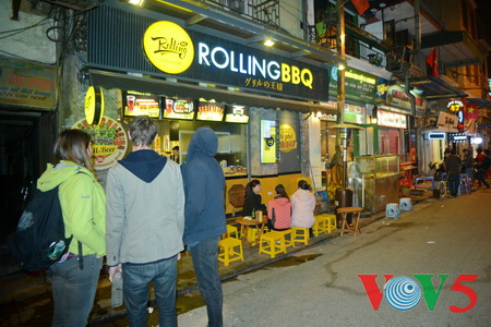 卖玉米奶、田螺肉串等越南特产的流动摊点