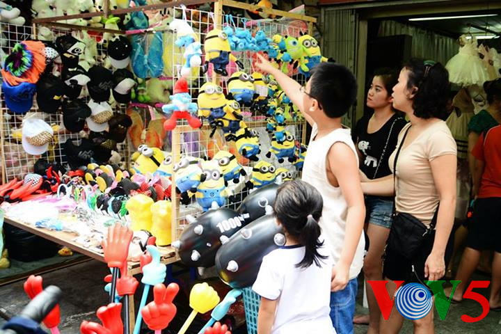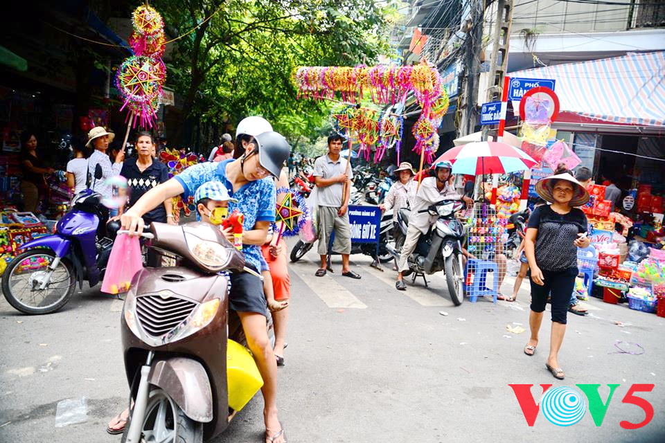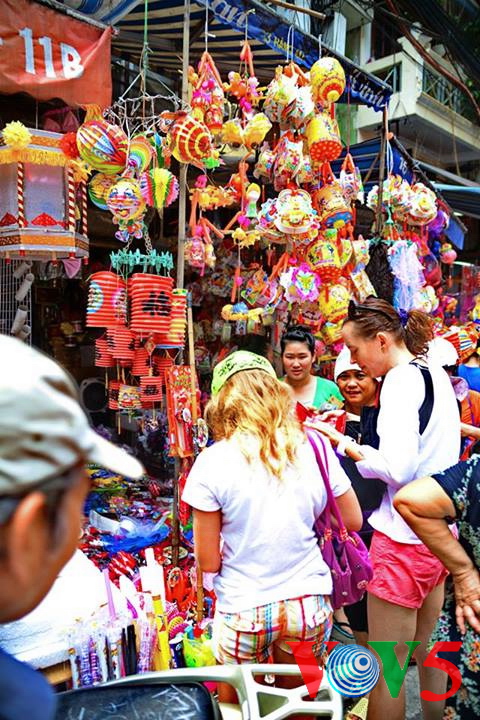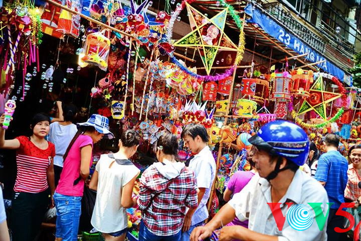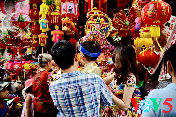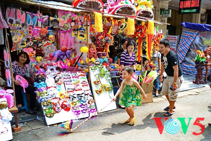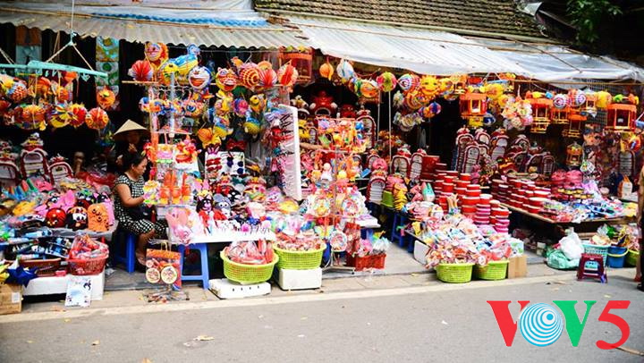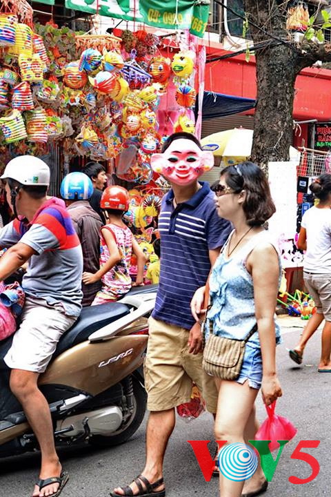 (VOVworld)- 农历8月正是河内36条古街迎接中秋的时候。在纸扎行街,各家商店都摆出了面具、灯笼、玩具、传统游戏道具等。河内市民,特别是年轻人经常来这里逛街购物。本期“镜头中的越南”,我们就到河内36条古街,与河内人分享这里的热闹气氛。