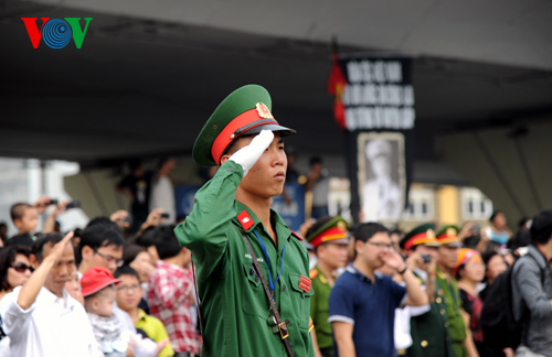 (VOVworld)- 离开国家殡仪馆后,武元甲大将灵车沿着河内多条街道行驶。整个过程庄严肃穆,催人泪下。