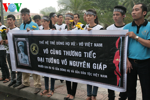 (VOVworld)- 离开国家殡仪馆后,武元甲大将灵车沿着河内多条街道缓缓行驶。整个过程庄严肃穆,催人泪下。