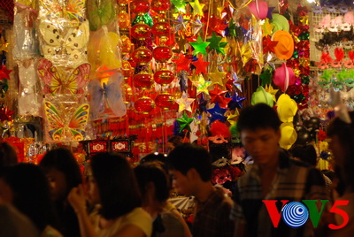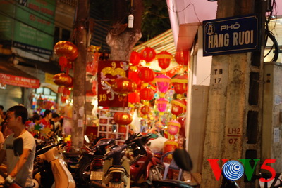 (VOVworld)- 中秋节是越南人一年中重要的传统节日之一,特别是对儿童。每年农历八月,河内冥器行街、梁文干街等古街都格外热闹,特别是冥器行街。在这段时间,每个商店都摆满了玩具、龙灯、月饼等。现在,请大家体验一下河内古街的中秋节气氛: