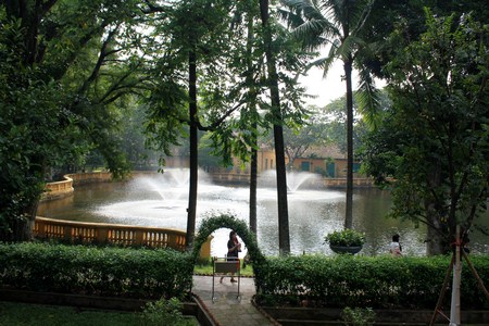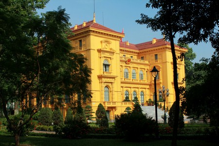 胡志明主席从1954至1969年人生最后的15年在这里生活和工作。在主席府内的胡志明历史遗迹区,游客可参观胡主席生前居住过的高脚屋及附近的树木、花草、鱼池等。46年来,胡志明历史遗迹区一直保持其历史、文化和审美价值。