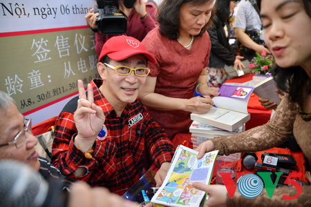6日上午,六小龄童参加在河内举办的签名售书、与越南读者交流活动