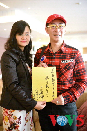 的副主任吴氏碧顺合影并赠言“祝越南之声华语节目越办越红火”