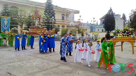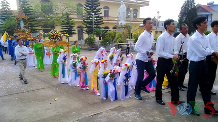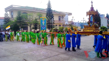 (VOVworld)- 广宁省芒街市茶古教堂日前举行复活节。由于茶古教堂是越南较为古老和美丽的教堂之一,因此除了当地教徒外,复活节还吸引众多国内外游客参加。