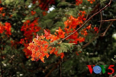 (VOVworld)- 越南的夏天,不只紫薇花,黄碟花、葵花、百合花也在盛开。对学生和曾经的学生来说,凤凰花代表的是夏天和学生时代。现在请透过本台记者的镜头欣赏河内美丽的红色凤凰花。
