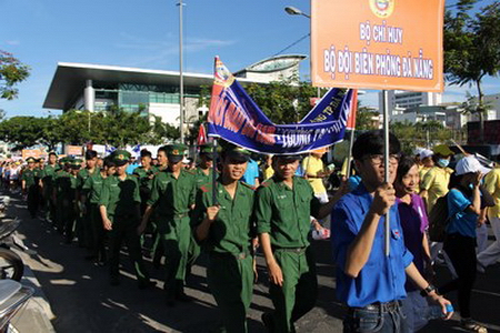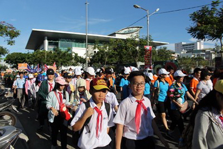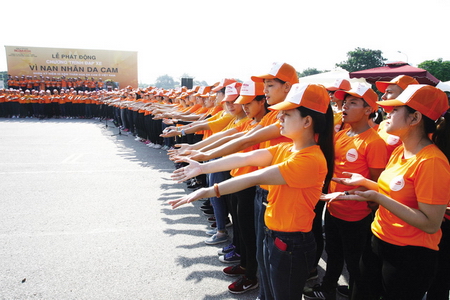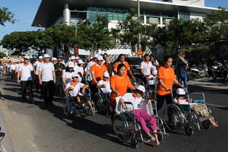 岘港市举行为橙剂受害者募捐步行活动,3千多人参加(Tienphong.vn / 江青摄)
