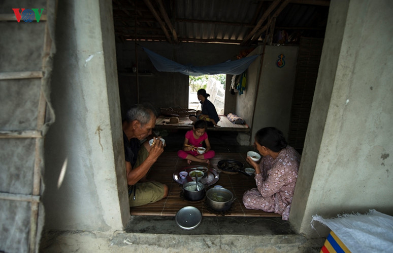 当地唯一的森林保安阮玉答与家人一起吃饭