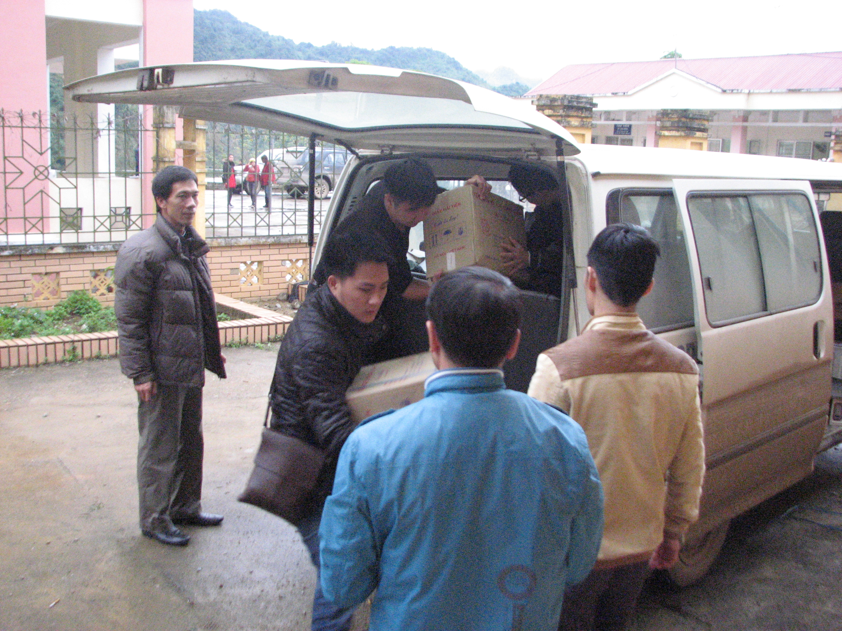 长途跋涉近400公里,到了地方后,VOV5青年团员赶紧把慰问品从车上搬下来