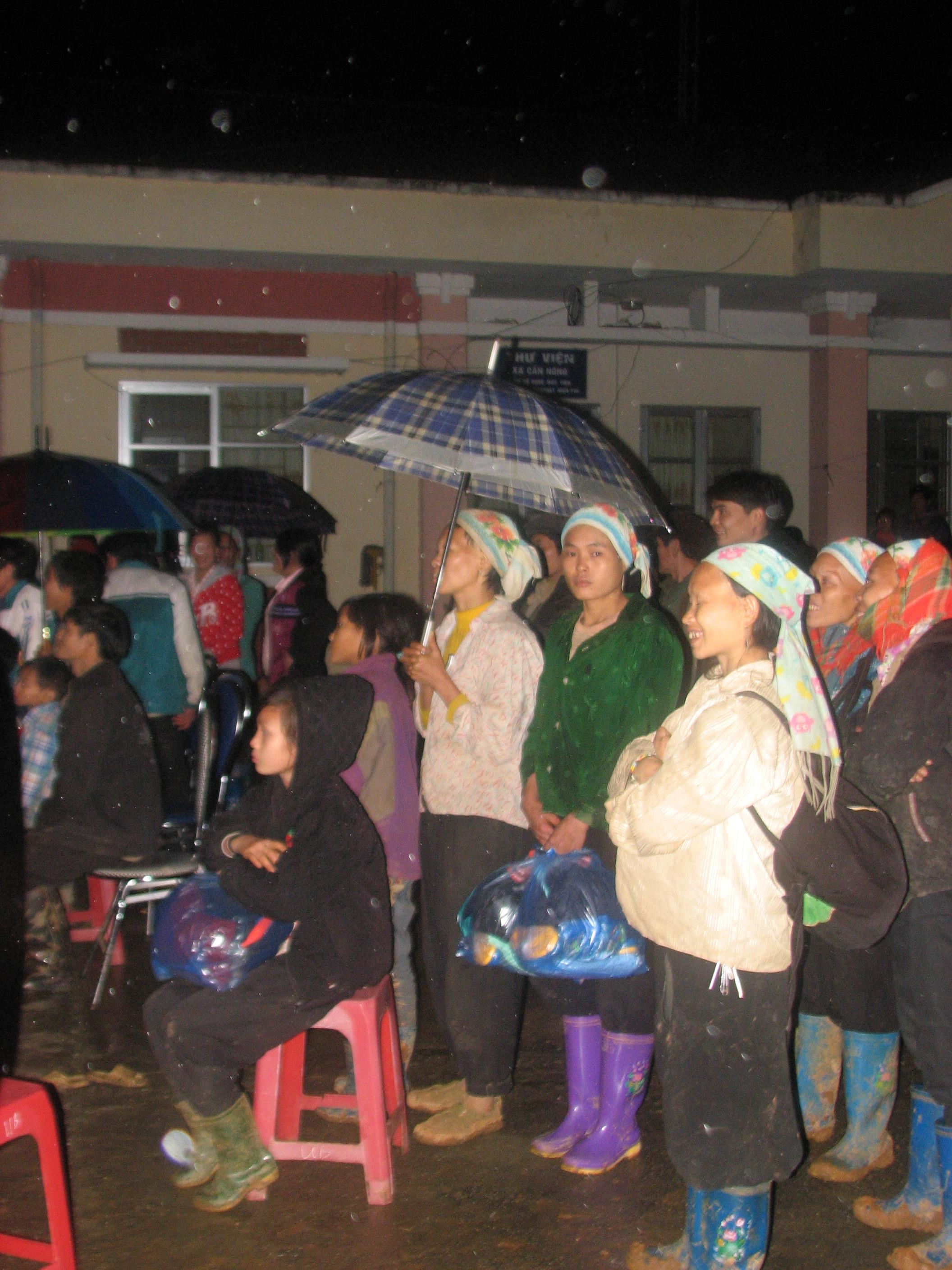 当地赫蒙族、瑶族等少数民族同胞冒雨看表演