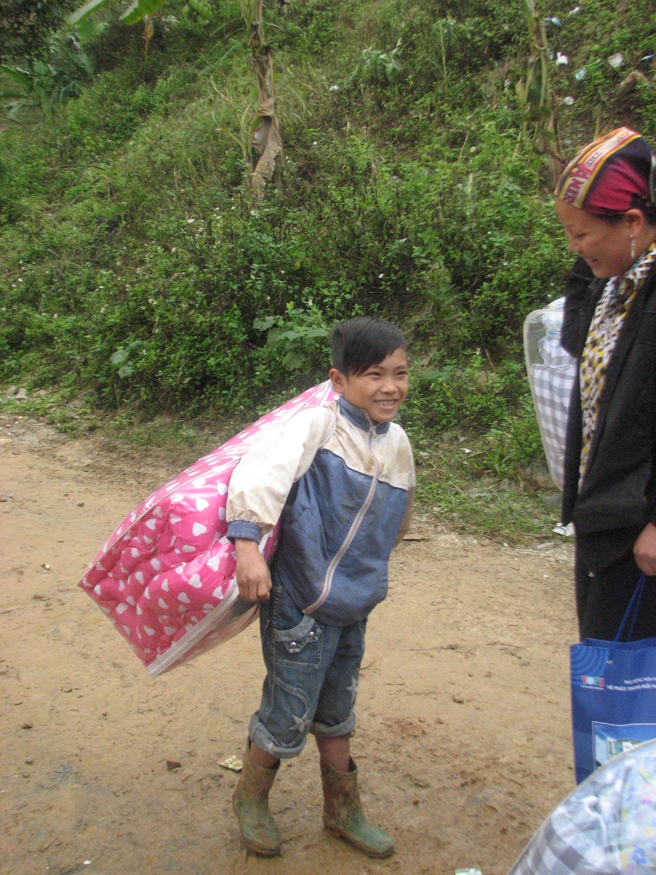 VOV5总监段氏忠把棉被分发给当地少数民族同胞