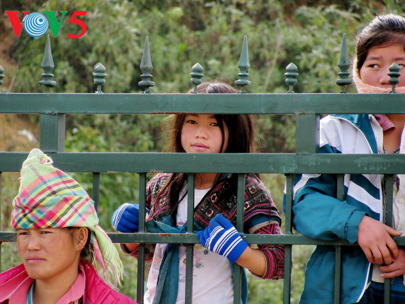 害羞的小女孩,躲在栏杆后关注我们的活动
