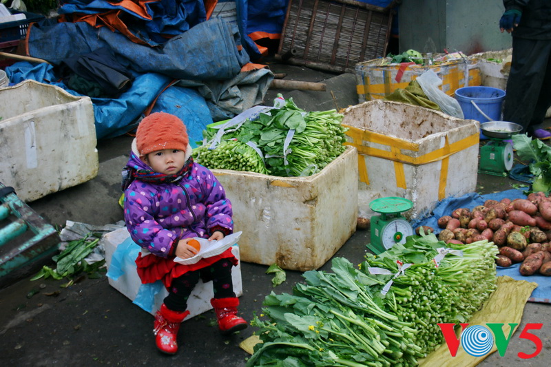 除了少数收到礼物的孩子外,还有很多孩子的生活很艰苦:这个小姑娘小小年纪就要帮家里看蔬菜摊