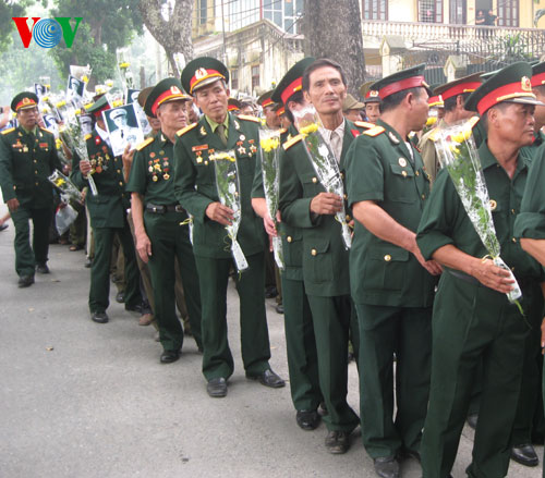 (VOVworld)- 听到武元甲大将去世的消息,退伍老兵无不感到悲伤,对他们来说,就像失去了家人。这几天,黄耀街30号武元甲大将的私宅里外,人潮如海,人们纷纷来这里献花、上香,其中包括很多退伍老兵,他们曾经战斗在越北、长山、奠边等全国各地的遥远战场。