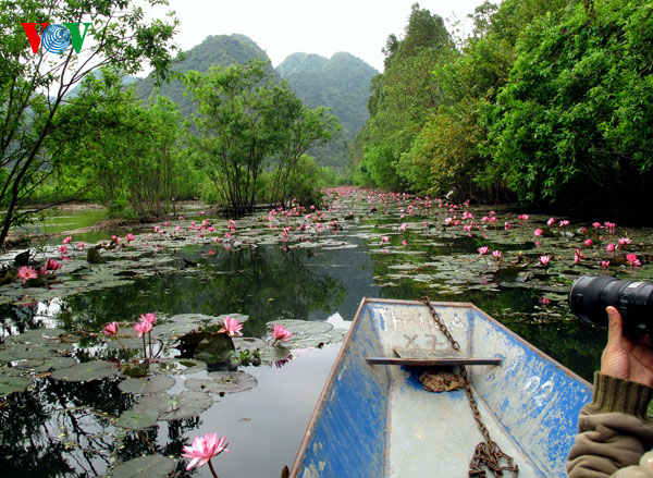 (VOVworld)- 很久以来,越南香迹寺就在国内外游客享有盛名。每到春节,无数游客前往香迹寺上香游览。其中不少人对香迹寺燕泉盛开的红睡莲情有独钟。在密林碧水中亭亭玉立的莲花,有一种超凡脱俗的美。今天的《镜头中的越南》,请大家欣赏燕泉红睡莲的风姿。