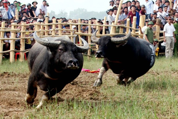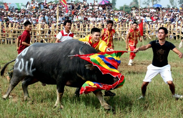 (VOVworld)- 除了海防市图山斗牛节、永福省立石斗牛节外,义安省宜泰斗牛节也颇受欢迎。今年的宜泰斗牛比赛吸引了数万人观看,共有24头牛参赛。今天的《镜头中的越南》,请大家参观宜泰斗牛比赛: