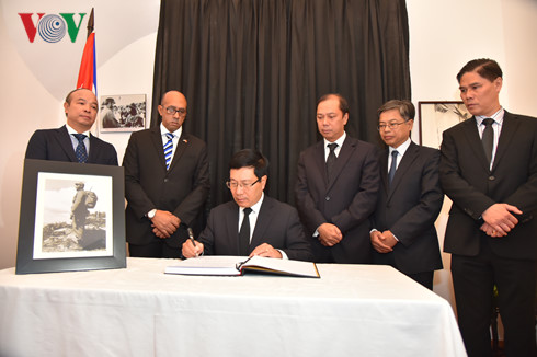 越南政府副总理兼外交部长范平明在吊唁簿上留言