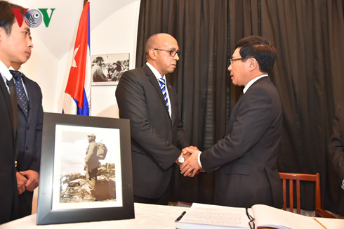 (VOVworld)- 古巴革命领袖菲德尔·卡斯特罗于当地时间11月25日晚22时29分去世,越南党政领导人当天向古巴党政领导人致唁电,随后前往古巴驻越大使馆吊唁菲德尔·卡斯特罗。
