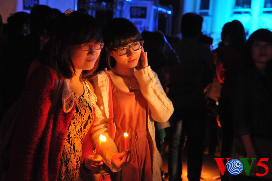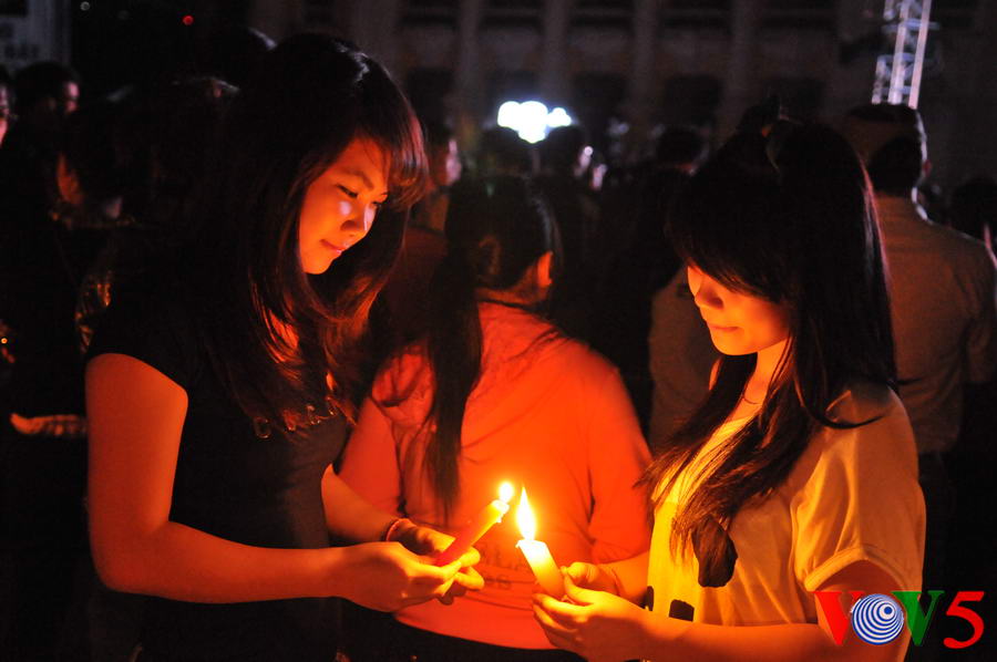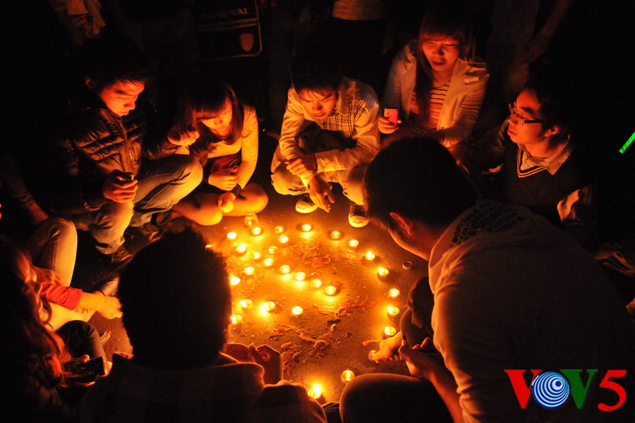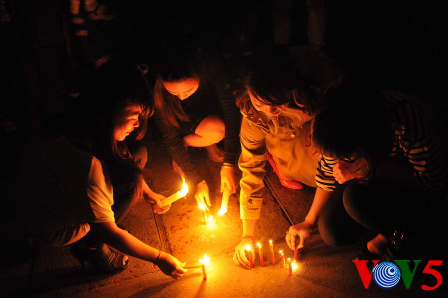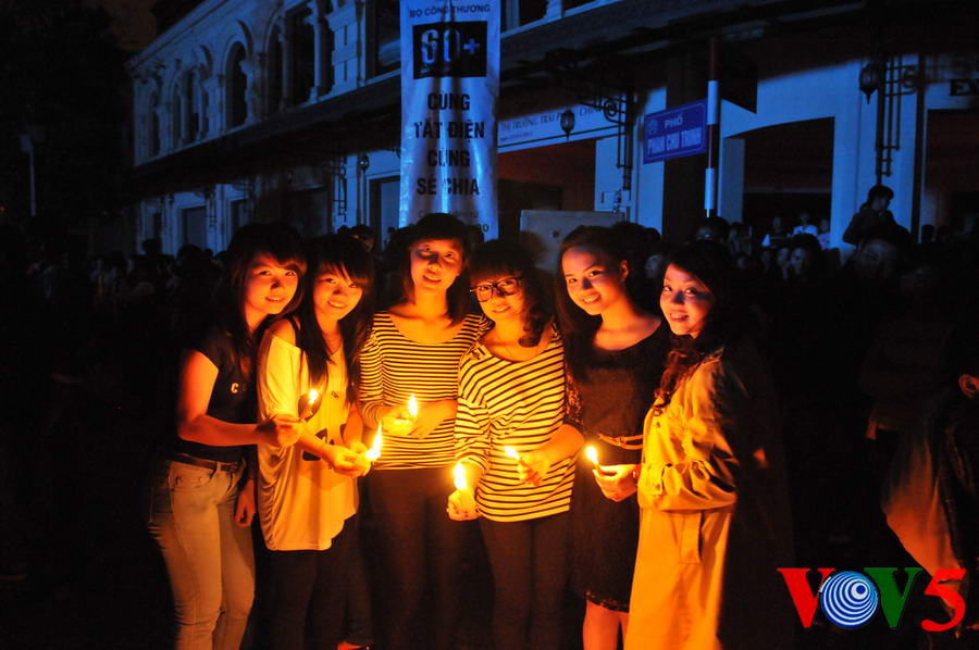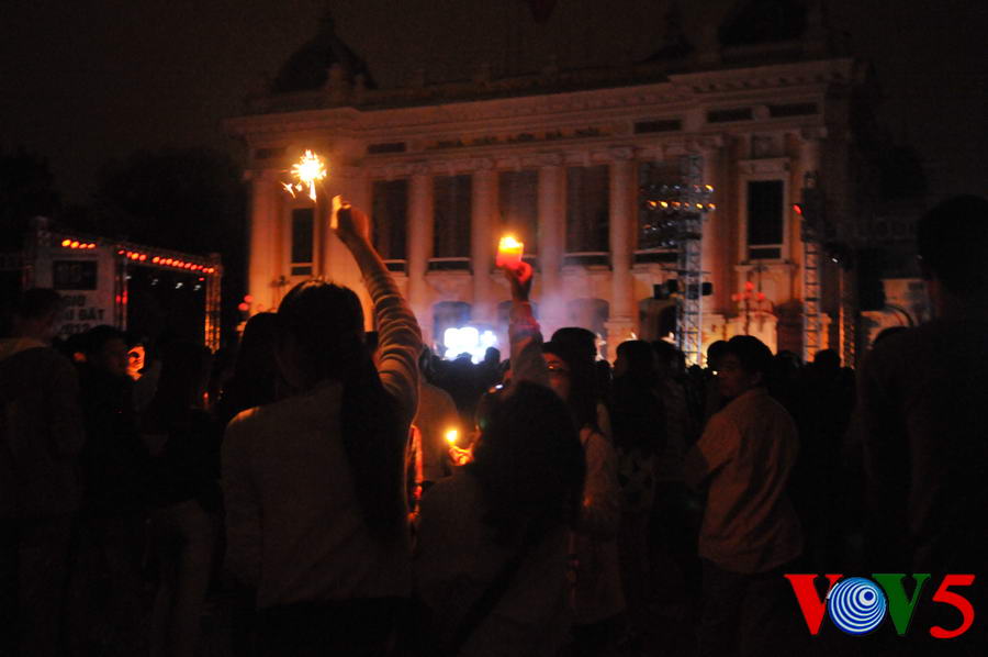 (VOVworld)- 熄灯一小时活动3月31日20时30分至21时30分在河内八月革命广场举行,以响应题为“我和你一起行动”的“地球一小时”活动。下面是本台记者拍摄的本次活动场面
