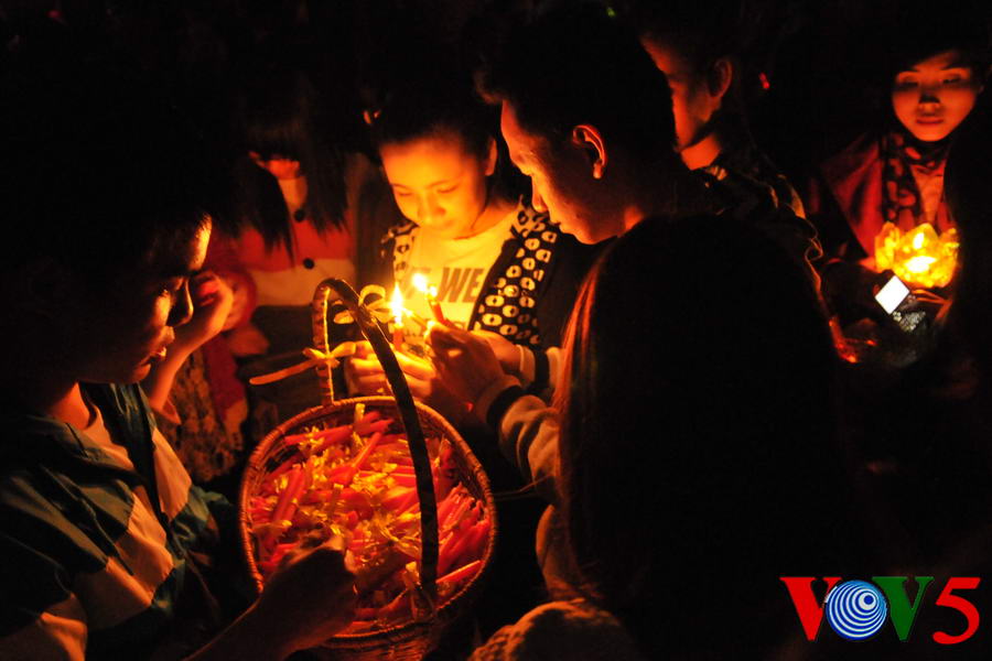 | 20时30分,广场灯光全部熄灭,人们点起蜡烛 |
