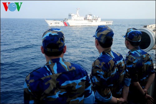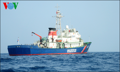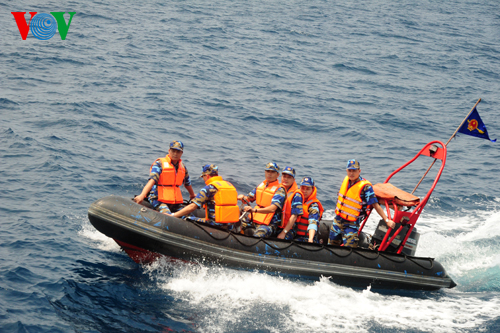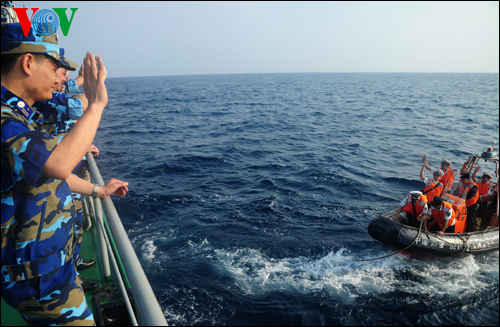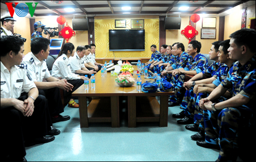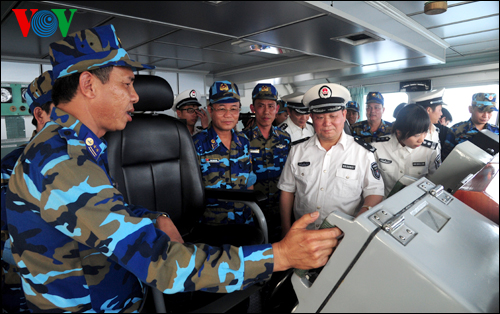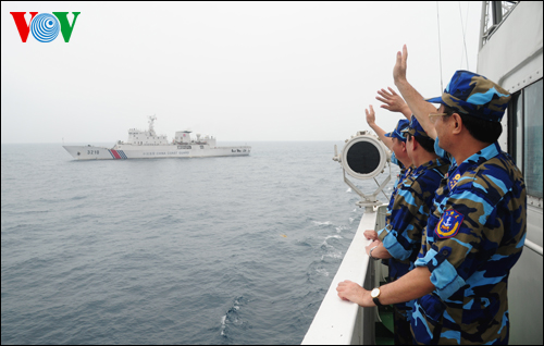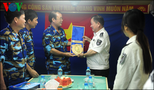 越方巡逻队由海警司令部副司令潘清明大校率领