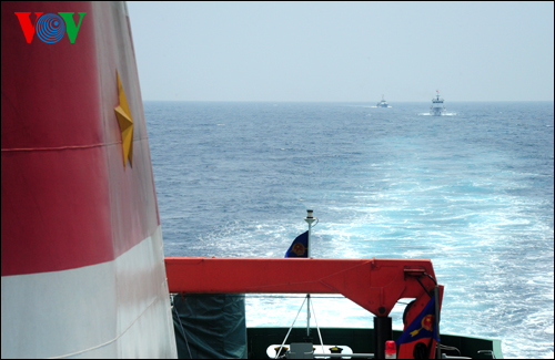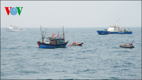 (VOVworld)- 越中第九次北部湾渔业联合巡逻4月18日圆满结束,这是由越南海警和中国南海区渔政局共同开展的年度活动。本期“镜头中的越南”,我们向大家介绍本台记者玉城发自现场的一组图片。