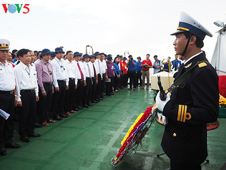 下面VOV5向您介绍记者美茶于去年6月探访这里时拍摄的在鬼鹿角礁牺牲的64名越南海军战士及英雄烈士缅怀仪式的图片。