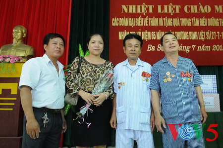(VOVworld)- 每年7·27越南荣军烈士节,全国各地纷纷举行看望慰问伤残军人和烈士家属活动。在探望南定省三星(Ba Sao)伤残军人疗养中心时,本台记者与这里的伤残军人和家属进行了交流并留下了难忘的记忆。