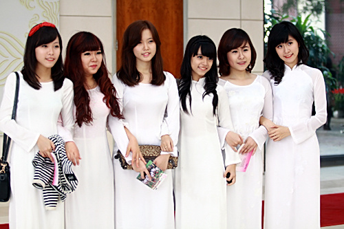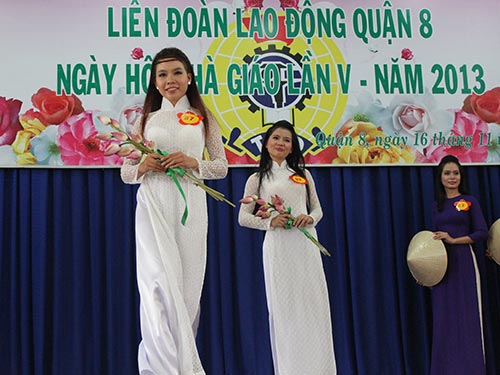 胡志明市第8郡举行“奥黛”表演,郡内各所学校女生参加