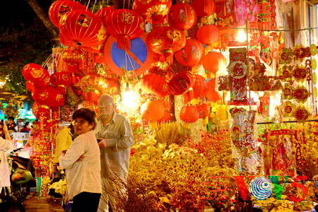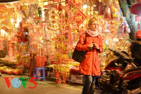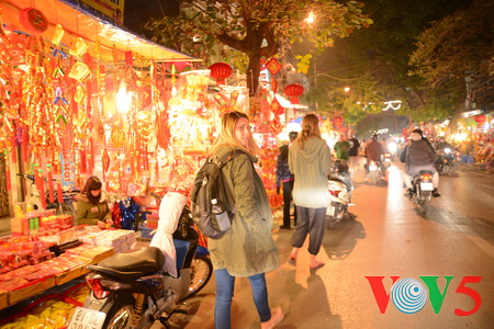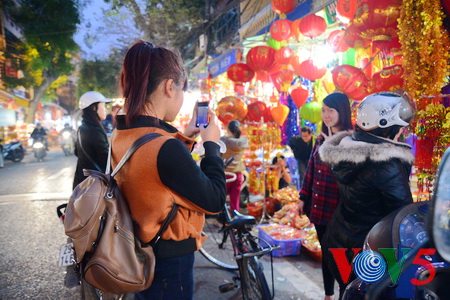 (VOVworld)- 每年春季,不少国外游客来越南旅游。春节前几天,河内古街特别是纸扎行街,到处都是红灯笼、红春联、纸桃花。