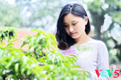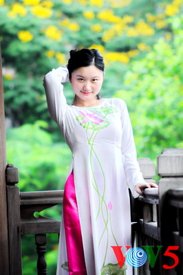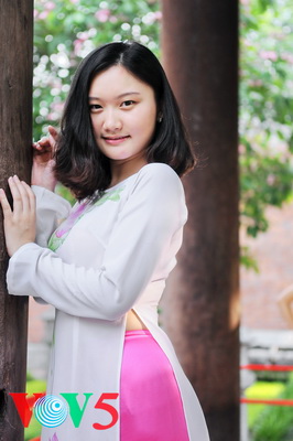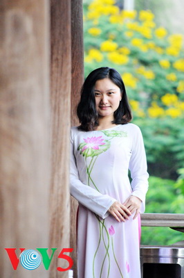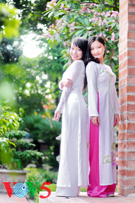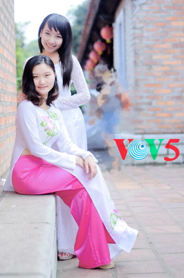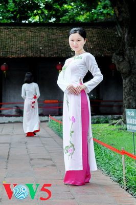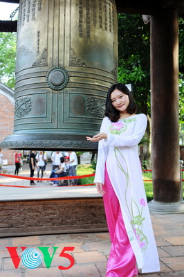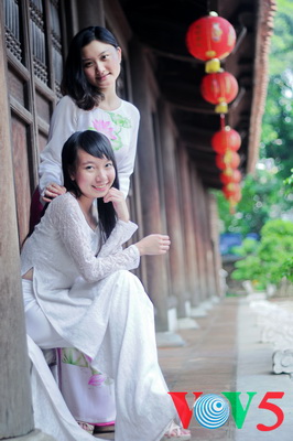 (VOVworld)- 不久前,中国留学生在越中关系节目中分享了他们眼中的越南长衫。今天,我们一起分享她们身着长衫在文庙国子监留下的倩影: