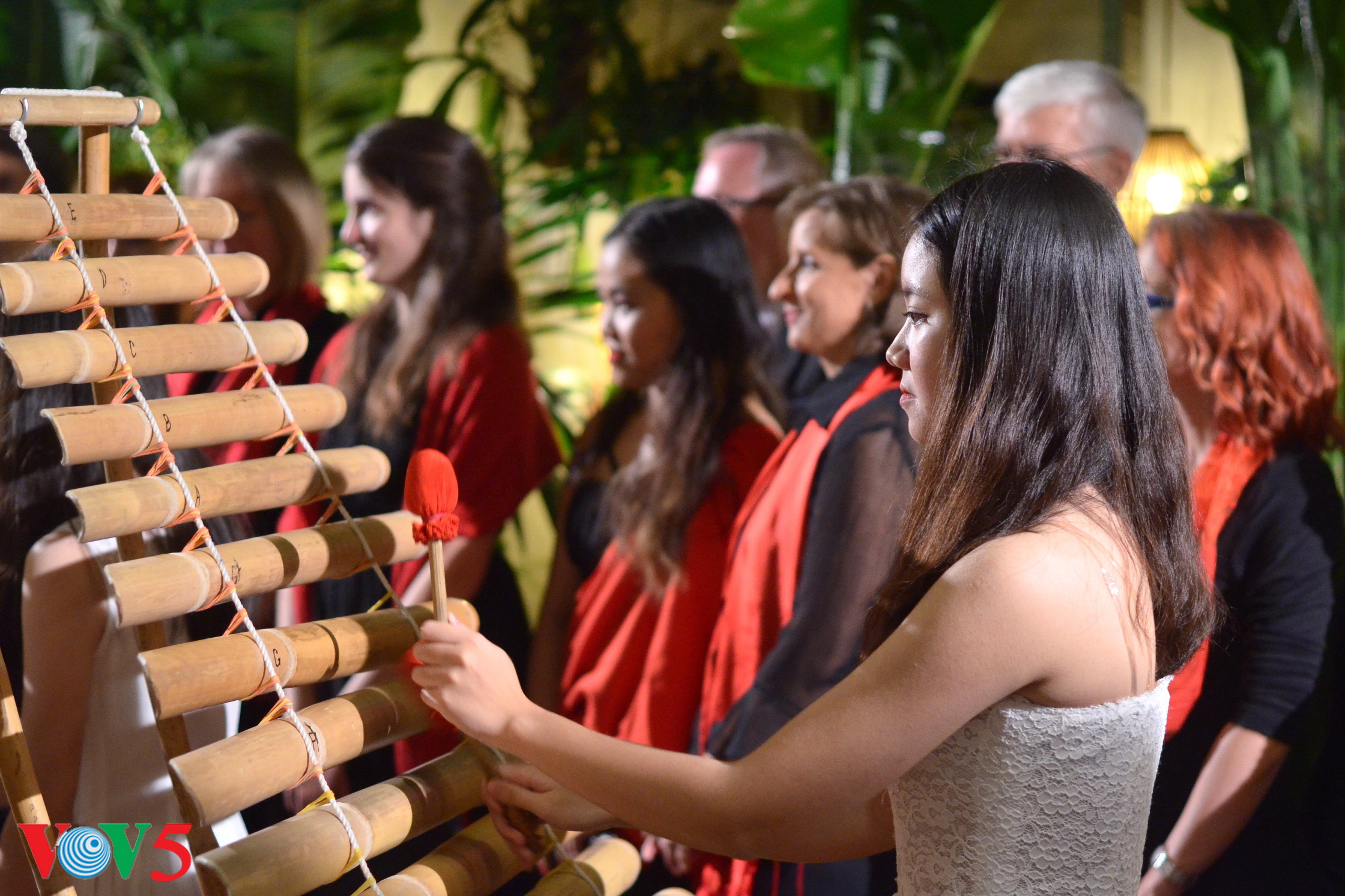 (VOVworld)- 已成惯例,每年12月,越南德国歌德学院又举行圣诞节音乐晚会。参加今年音乐会的除了交响乐团、“河内歌声”合唱队外,还有在交响音乐表演中大胆使用越南传统竹制乐器的青年音乐指挥家童光荣和他成立的竹乐团“新活力”。