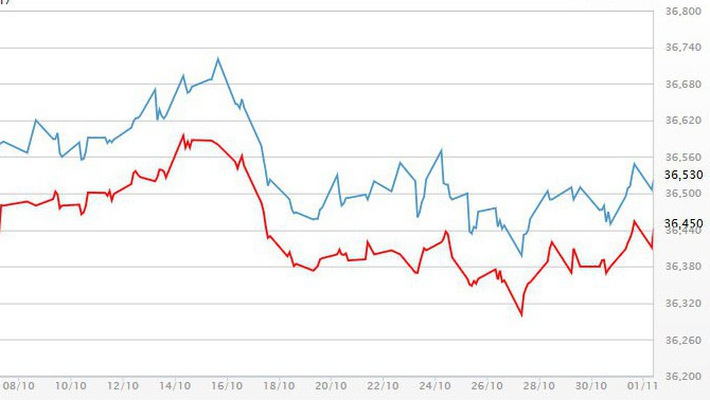 (VOVWORLD) -10月31日,西贡金银珠宝公司的SJC金条买卖价分别为3633万和3653万越盾一两,涨3万越盾。