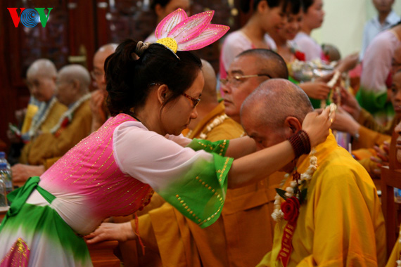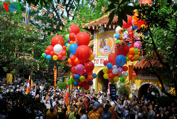 (VOVworld) - 越南佛教信徒刚刚举行多项佛事活动,欢度庄严而平安的佛诞节。广大僧众和信徒积极参加这些活动向世人展示了一幅关于越南信仰自由,内容全面,含义深刻的画卷。